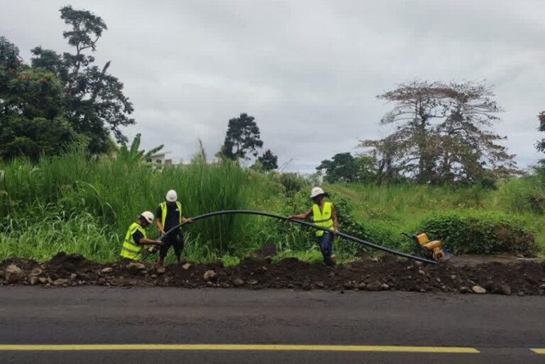 Mise a jour à 16h13 selon « Tahiti infos » Ouverture lundi matin Priorité aux véhicules qui circulent dans le sens montant Prudence Mais attention !La partie du caniveau recouvert est en cours de séchage (voir la photo). De la signalisation a été posée ainsi que des ouvrages de sécurisation en béton.La route est rétrécie sur une…