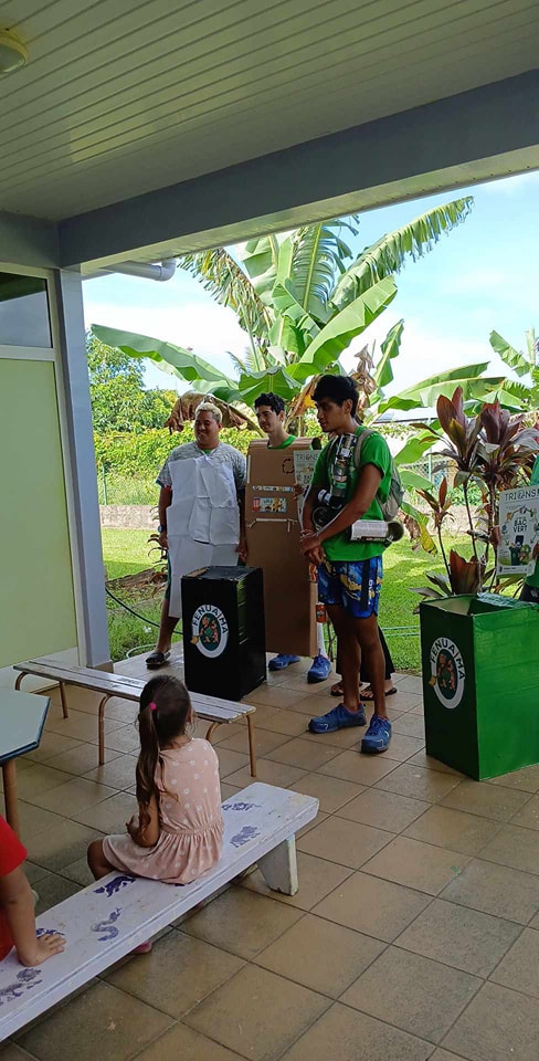 Nos jeunes engagés du service civique sont sur le terrain pour sensibiliser aux gestes du tri. Ils sont accompagnés de Thierry, Timiona nos agents du service.